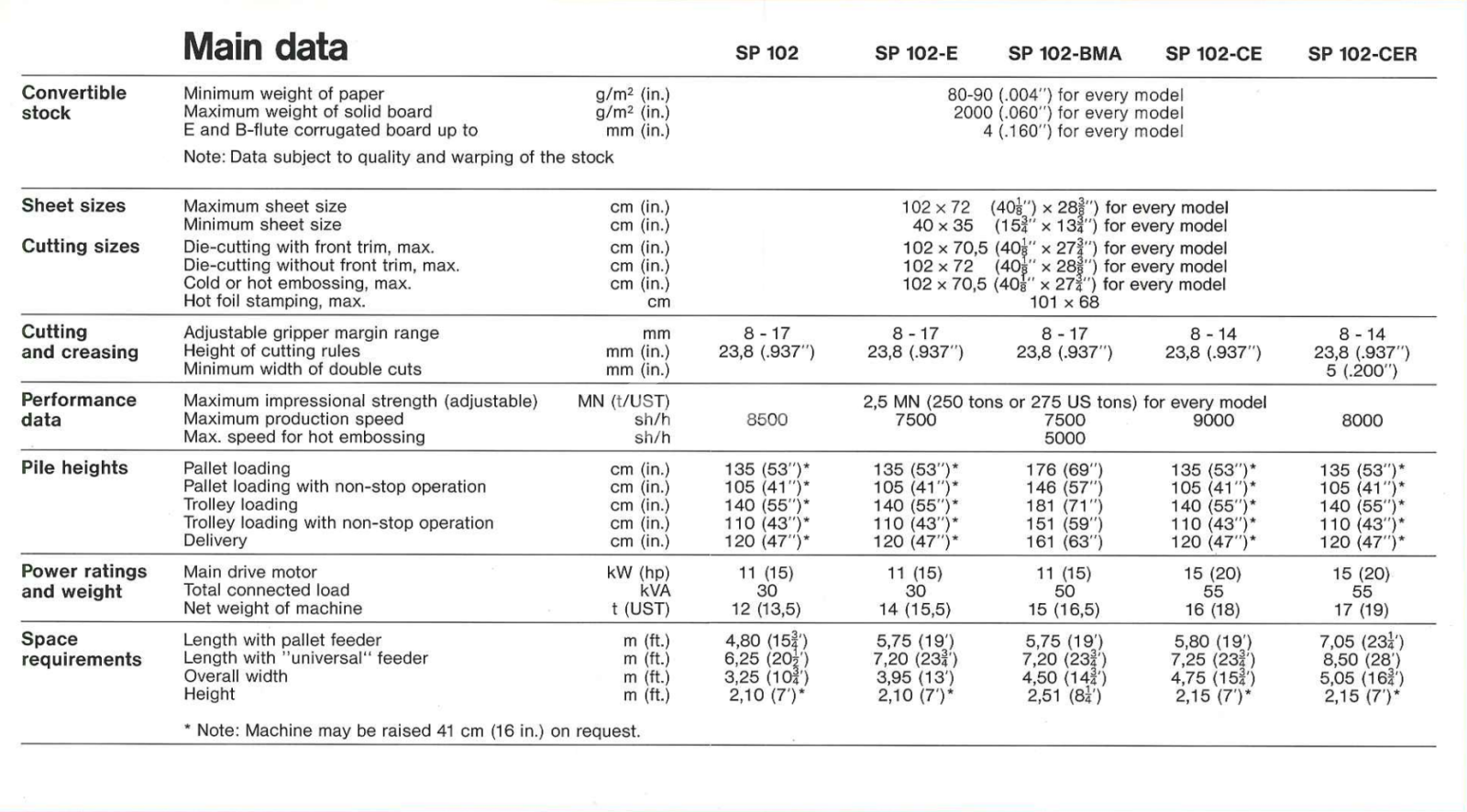Bobst 102 Specifications |